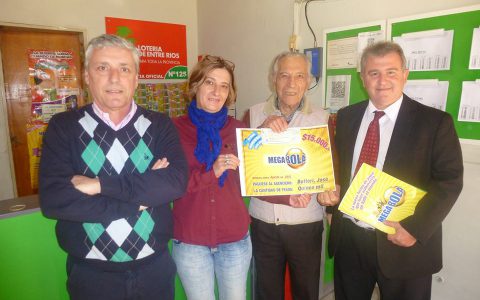 Personal de IAFAS y representantes del juego Megabola entregaron el Premio Estímulo correspondiente a dicho entretenimiento, al propietario de la Agencia Nº 125, de Concepción del Uruguay, el pasado martes 25 de agosto.